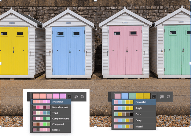 Another option is to extract a theme or a gradient from an uploaded image (Figures 14 and 15). This is like using the Color Theme tool in InDesign, but you have more control here because you can move the samplers around on the image to tweak the result.