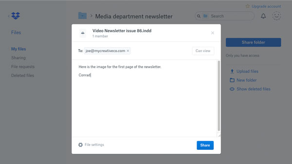 Perhaps the most common workgroup sharing tool is also the most problematic: email. Sure, email is still a popular way to share files, because everyone is familiar with it. But sharing files through email creates several complications in a production environment. Alternatively, cloud storage services can make it easier to manage versions, preserve InDesign links, and transfer very large or numerous files that may run into file size limits for email attachments—while being almost as simple to use as email.