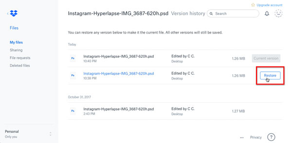 If the current version contains a mistake or becomes corrupted, you can select an older version to make it the current version. The oldest version is the one initially uploaded to Dropbox; anything older than that needs to come from your own local backups.