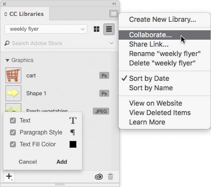 Figure 7. Creative Cloud Libraries are a way to share objects, styles, and components with collaborators.
