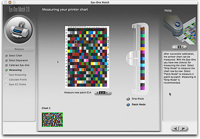 The printer profiles that Eye-One Photo creates are identical to the RGB printer profiles produced by GretagMacbeth’s top-of-the-line ProfileMaker Pro on default settings. Eye-One Photo doesn’t provide the advanced options included in ProfileMaker Pro (in fact, it doesn’t provide any options), but for most color printers driven as RGB devices, the default settings work extremely well — much better than the generic profiles supplied by most photo-inkjet vendors, for example — and the lack of options certainly makes for simplicity (a relatively rare quality in profiling processes!).