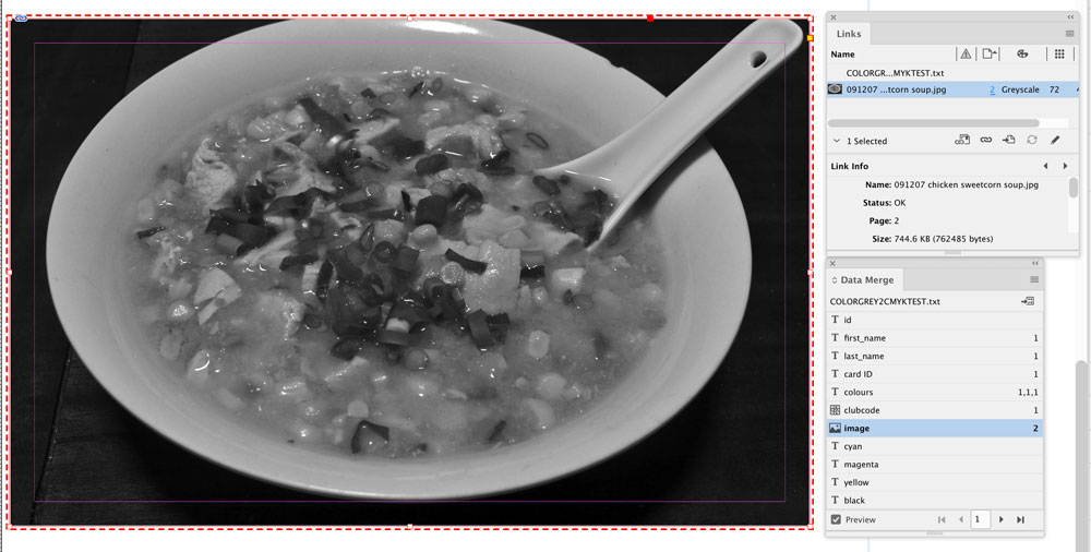For example, look at this image field in a data merge. This record has a grayscale image.