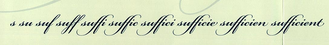 Figure 2: As you type more letters of a word in Bickham Script Pro, the font chooses the appropriate form of each letter to go with the other letters in the word, or on the line.