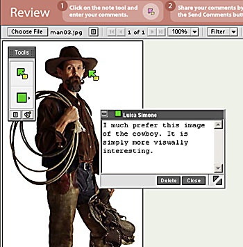 Figure 3: Adobe DesignTeam provides only one, supremely basic annotation tool for online commentary–the digital sticky note.