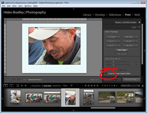 Tip: There is no way to enlarge an image in a cell and drag in both dimensions to view only a portion of the image. If you need this functionality, return to the Develop module, crop the image to select only the area you want to print, and then return to the Print module and add the newly cropped image to the layout.