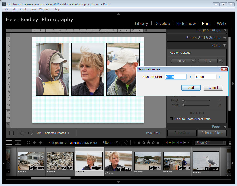 In Lightroom 3, Adobe has given us better options for assembling images for printing. In particular, the custom package layout style lets you organize one or more images in a layout that you can print or save to a file. You can also save your design as a template to use anytime. In this article, I’ll explain the basics of working with the custom package layout style in Lightroom, some things to watch out for, and a couple of tricks for getting the most out of it.