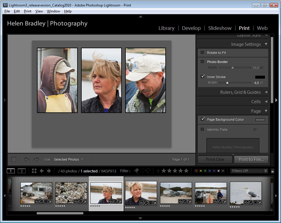 In the meantime, to add a photo border, go to the Image Settings panel, select the Photo Border checkbox, and adjust the width of the border. Note that Lightroom will add the border to the inside of the cell, reducing the overall size of the image.
