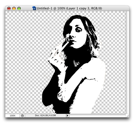 Remove the visibility of the top layer by clicking its Eye icon in the Layers panel. Select the second-to-top layer, and go to Image> Adjustments> Threshold again. Move the slider to a higher amount than you used in the previous step (about 60 in Figure 5).
