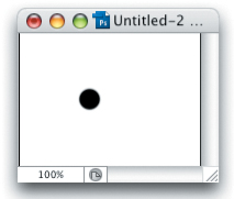 First, I created a single stitch by starting with a round brush tip (Figure 42). I clicked once with the brush. Then while pressing the Shift key to connect the clicks, I clicked a second time directly across from the first click (Figure 43). I turned the stitch into a brush (Edit > Define Brush Preset) and named it Stitch, as you can see in Figure 44.