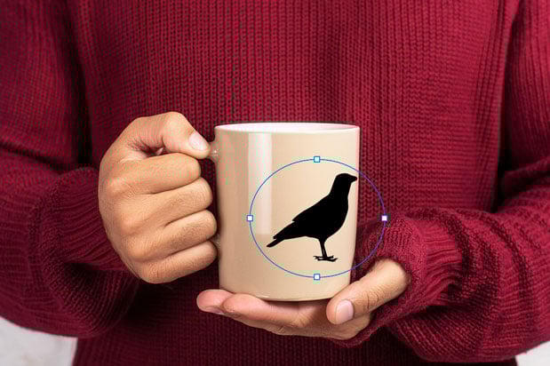 You can drag the artwork to move, rotate, or resize it. As you do so, the artwork will adapt to the shape of the object in the photo to create a realistic mockup.