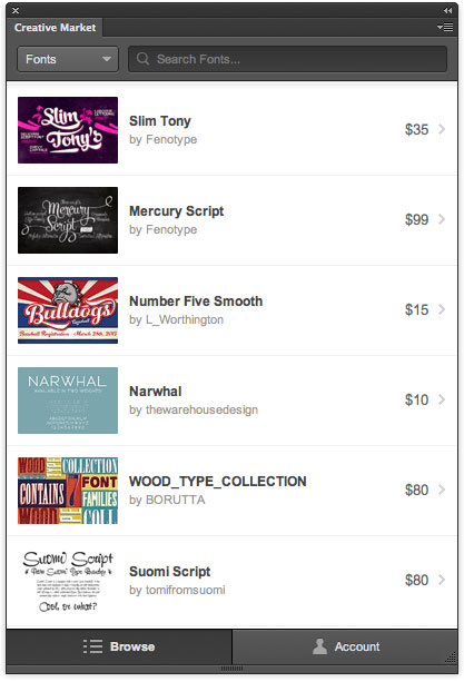 If you work in Photoshop every day, it’s likely that you’re often in need of some creative resource to complete a piece of work. And in some cases, the search for a certain type of brush or font or texture may cost you a lot of wasted time or effort. So the folks at Creative Market have released a free extension for Photoshop CS5 and higher that adds a panel where users can find, purchase, and install resources without ever leaving the application.
