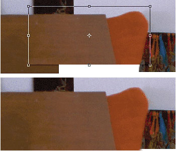 Figure 18: Stretching the transformation down to fill the gap (I needed to enlarge the copy slightly taller from the top as well), and the copy after the transformation was applied.