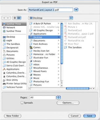 If there are multiple pages, or if the user wants the layout exported as spreads, these can be specified in the lower part of the dialog box.