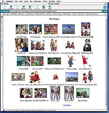 Figure 5: DeBabelizer makes easy work of creating functional, if not stylistically beautiful, Web catalogs. After you point it to a folder of images, DeBabelizer builds a content folder, opens every image in a series, and posts a thumbnail of that image on a templated HTML page (5a). The module automatically assigns clickable hotspots to each thumbnail, and clicking on a thumbnail brings up a new preview page with a large preview of the image (5b).