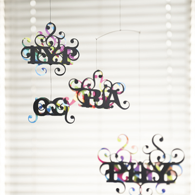 Veer, though best known for its innovative stock photography and type, also always has some good merchandise. Its new Typographic Mobile is yet another crowd pleaser. The characters (selected from Clarendon and Baskerville) are made of recycled back card and lined with press sheets from the company’s marketing campaigns.