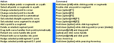 Many more options for editing segments and points are available by holding down modifier keys during your path or segment-editing process. Table B lists these keys and their functions, as well as other shortcuts used to select, alter, and transform points and segments.