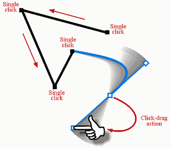 When using the Bézier tools, different mouse actions create points and segments with varied shapes and properties.