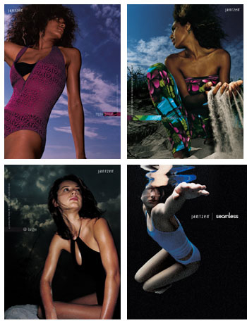 Plazm lists among its clients MTV, Nickelodeon, Blue Note Records, Capitol Records, Fox Sports Network, Sony Pictures Entertainment and the 100+ store chain, Figaro’s Pizza (you can see the complete client list here). For the swimwear firm, Jantzen, which has its headquarters in Portland, the design team repositioned this brand by adding “sizzle,” as the local newspaper Portland Tribune described it. You can see for yourself if it meets that description, below.