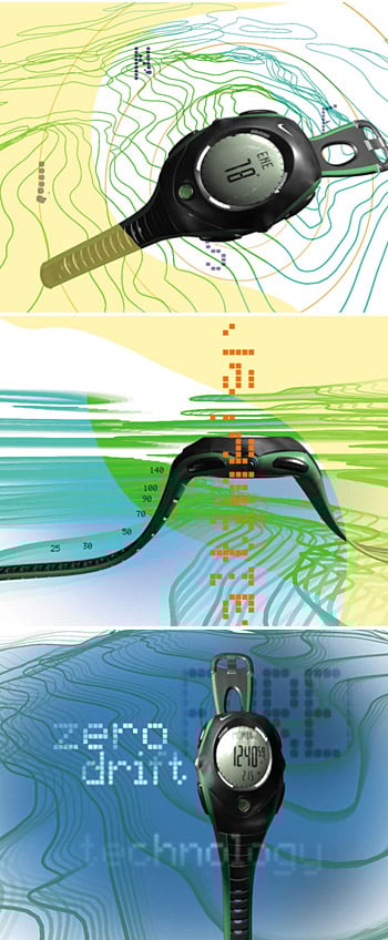 Lest you think all Why Not does is promote sensational modern art, let me tell you about another of its most recent projects: a series of mini-films for Nike TechLab to be shown in NikeTowns all over Europe. (TechLab, by the way, is a new-ish Nike brand that makes techno-gadgets for sports buffs.) Why Not traveled to Amsterdam to meet with Nike Europe’s Steve Thompson, who instructed the design team to create in-store motion graphics for three new products: a watch that monitors your heart rate (which requires wearing a strap around your chest), an orienteering watch (which gives you your exact location and coordinates), and an MP3 player designed in a swoosh to inspire your jogging.
