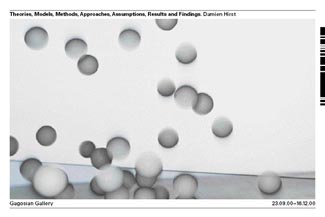 Barnbrook has now had a long collaboration with British bad-boy artist, Damien Hirst. In addition to the afore-mentioned Booth-Clibborn book, Barnbrook’s studio designed the poster and catalog for Hirst’s sensational exhibition “Theories, Models, Methods, Approaches, Assumptions, Results and Findings” at the Gagosian gallery in New York’s Chelsea district. Hirst’s work (16 sculptures, including a new series of paintings and “Hymn,” a 20-foot-tall bronze-painted anatomical model) explores his current preoccupation with the human body and the process of dying.