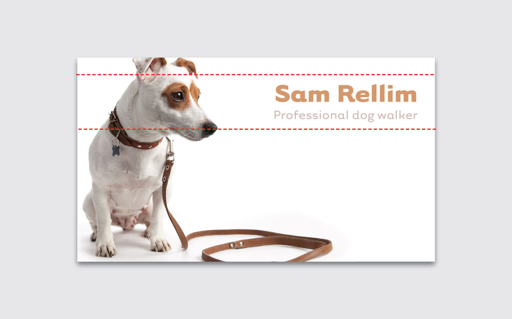 But the dog looks distant and lonely in the center of so much white space. Cropping the photo tightly creates more intimacy and placing it to the left works well because the dog’s gaze points to an area we can fill with text.