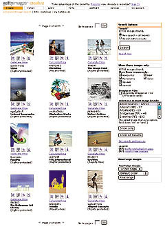 Figure 4: Stock-photo agency Getty Images orients its search results page to the goals of the customer by offering options to sort by shape, color, brand, and licensing.