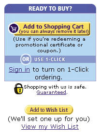 Figure 5: Most shopping carts use a customer sign-in process similar to Amazon’s. Note the reassuring shopping guarantee.