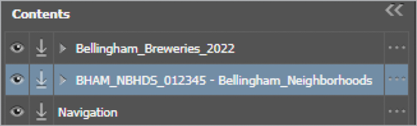 Because the World Navigation vector tile basemap is already rich with layers, I had only one more layer to add: Bellingham Neighborhoods.