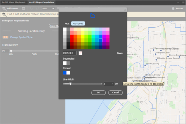 To demonstrate creating a map with ArcGIS Maps for Adobe Creative Cloud, I will focus on Bellingham Trails & Brew, a map of the trails, bike infrastructure, and breweries in my hometown.