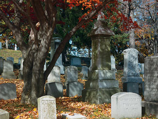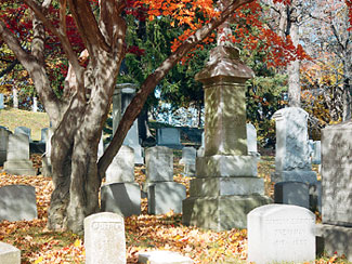 If you were shooting with film, you’d expose for the shadows and then develop for the highlights. You can expose for the shadows on a digital camera as well, but your highlights are likely to be blown out, as is the case in our image in Figure 2. In this case, we overexposed to capture more shadow detail in the trees and stones, but our tombstones in direct sunlight have almost no detail at all.