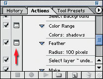 If you choose to purchase, we recommend turning on the dialog boxes so you can tweak settings. Miranda’s action defaults to a 100-pixel feather, which was too much for some of the images on which we tried it. If you click the dialog box icon on the Actions palette, as shown in Figure 8, you’ll be able to enter your own settings where necessary.