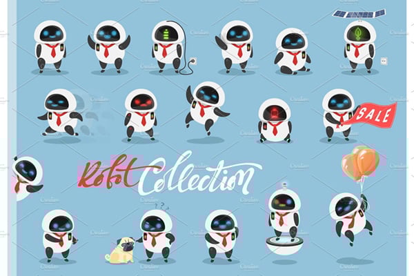 Who doesn’t love a plucky little robot who is into botany and musical theater? Wall-E showed us that even robots have feelings and that human nature might not be as doomed as we think. But mostly: cute robots! This flat icon set—which looks a heck of a lot like Wall-E’s Eve—though more plump, like one of the Axiom ship passengers—contains vector-styled robots engaging in different activities. Bee-dee-bee-boop-bop.