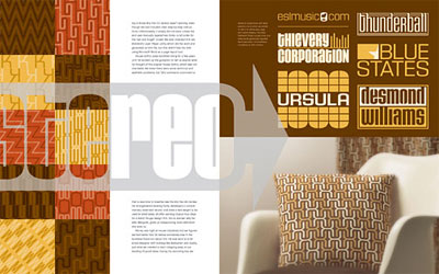 Intense use of the techniques of print production such as overprinting multiple inks and working directly with the producers of packaging materials characterizes the House Industries approach. They got their start when Andy Cruz and Rich Roat landed a commission from Calumet Carton for a promotional piece for the company’s CD packaging. The two young designers immediately started their own firm in a cramped back room, and they worked wonders with the rough, brown Kraft material that Calumet wanted to promote.