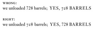 A newer error, however, is almost the opposite: using a font that has lowercase figures as its default, such as FF Meta or FF Scala, and not switching to uppercase figures when a number appears in the midst of a word or line that’s all in caps. Lowercase figures in a line of uppercase letters look every bit as silly and distracting as uppercase figures in a line of running text.