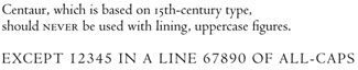 Old-style typefaces like Centaur were never intended to have numerals the height of the caps, and uppercase figures look clunky in text—although they’re handy for lines of all-caps.