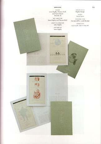 While nothing beats seeing books and posters and magazine spreads in the flesh, so to speak, there’s a lot to be said for the convenience of having their images in a book that you can browse and keep. As far as I can tell, without having done an exhaustive study of every page of the book, this year’s annual has worked out any bugs and glitches in the handling of digital images supplied by the winners; everything looks sharp and well-presented. And the page design does a good job of presenting the images and their ancillary information clearly and simply (see Figure 5); unlike some design annuals I’ve seen, the design here does not get in the way.