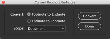 Hopefully, Adobe will get these bugs sorted in the next update. Extra points if they add an option to apply a style to the converted text in the Convert Footnote Endnote dialog box. Nevertheless, it is encouraging to see progress, as Adobe continues to address the shortcomings I pointed out in my original Endnotes article.