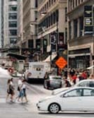 When there’s fine detail and especially text involved, standard enlargement techniques fail completely. This tiny crop of a city street is just 134 pixels wide, reproduced below at actual size. Enlarging this by conventional means would be unlikely to produce anything like acceptable results.