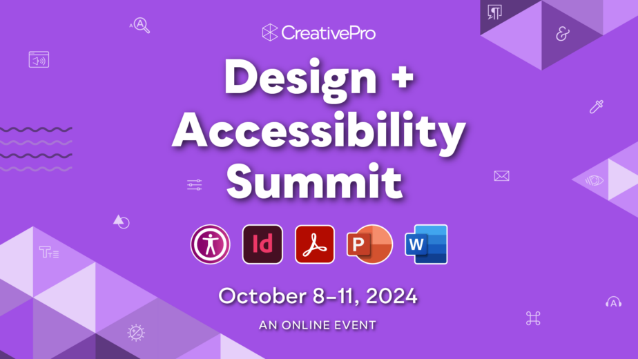 At The Design + Accessibility Summit, you will learn practical techniques for building accessible documents with InDesign, Acrobat, PowerPoint, and other tools widely used by creative professionals.