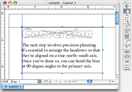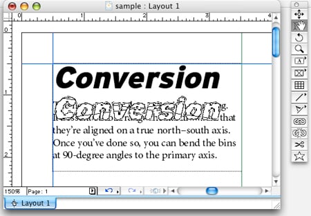 If you find the integration of letterforms into a single yet discontinuous picture box irritating, never fear, there’s hope! However, the following trick works only on type converted using the basic method, not on type converted to an anchored object.
