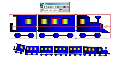 In the top portion of the screen above we are defining the central car as repeating. The stroke underneath shows the result.