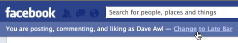 Figure 3: The Voice menu shows you whether you’re communicating using your own identity at the moment, or in the voice of the page. Click on either your name or the page’s name to change which hat you’re currently wearing.