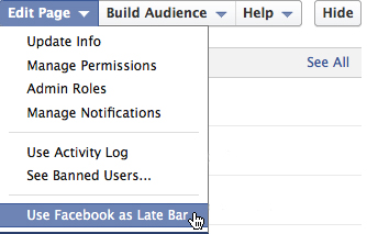 Alternatively, you can fully log in as the page by clicking the Edit Page button in the Admin Panel at the very top of the page, and choosing “Use Facebook as [name of page]” from the menu. Once you do that, you’ll be communicating in the voice of the page. (And as a bonus, the icons in the blue bar will show you notifications addressed to the page rather than to you as an individual, until you switch back to your own identity via the same menu.)