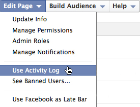 To check the Activity Log, head back up to the Admin Panel at the top, click the Edit Page button, and choose Use Activity Log from the menu.