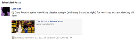 Using Facebook’s built-in scheduler may also give you a strategic advantage with EdgeRank, the proprietary set of algorithms that determine which postings get displayed to whom in Facebook’s News Feed. (See “Reaching Your Audience on Facebook: Understanding EdgeRank” for much more info on EdgeRank and how it works.)