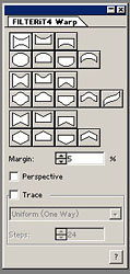 Probably the most useful of these tools are Wave and Warp. These tools provide “envelope” control that can be used to automatically warp and distort an object. When applied to text, Wave and Warp can be used to create effects that normally require a specialized application like TypeStyler. However, these tools do TypeStyler one better because they can be applied to any type of object, not just text.