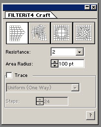 Similar to Wave and Warp, the Craft tool lets you brush a number of different types of distortions into the selected objects. Twirls, pinches, and free distortions can be applied to a single object, or to a group of selected objects. Like the Wave tool, the Craft tool provides a Trace function for creating blurry effects.