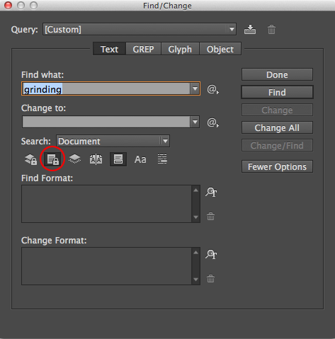 The Find/Change feature in InCopy is an incredibly time-saving feature. The fact that you can do advanced find/change routines using GREP aside, the standard text find/change allows you to intelligently find text in a document and even replace that text with the greatest of ease.