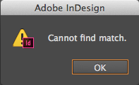 One thing that can throw people for a loop in an InCopy workflow however is that stories that are not checked out, cannot be searched using the Find/Change dialog… by default that is. If you perform a search in either InDesign or InCopy, content in stories that are not checked out (locked stories) are not included in the scope of the search and you will be presented with a dialog indicating that a match cannot be found.