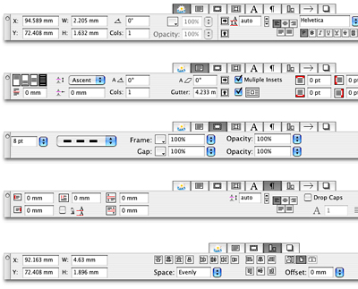 The classic XPress measurement palette can now turn into other palettes by highlighting the new button bar (which can be hidden) which rests on top.